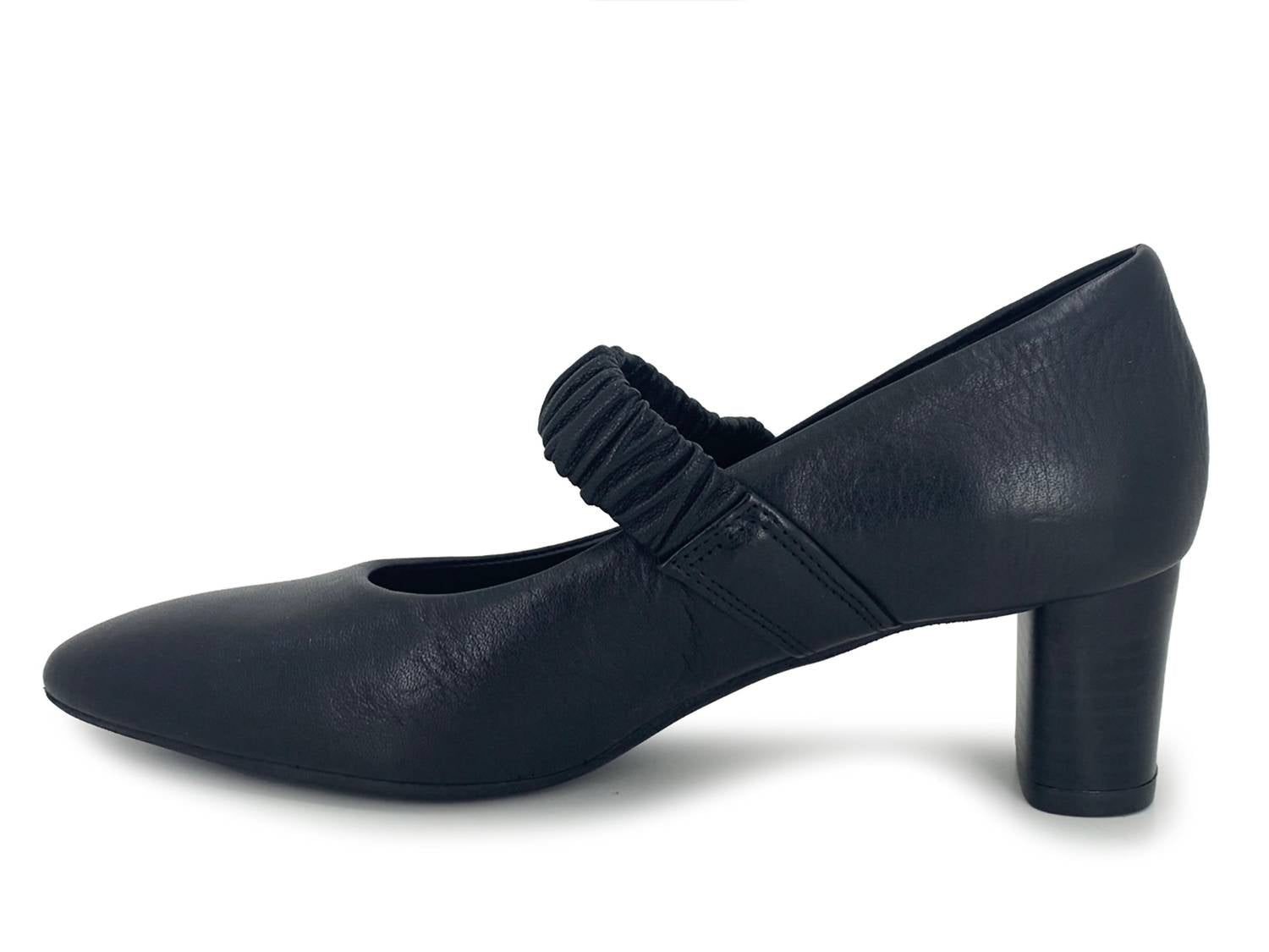Don’t be deceived, these heels are comfy as can be.Crafted from soft leather and featuring an elastic strap over the instep, these pumps ensure a snug and comfortable fit with a pointed toe design. The cushioned footbed and leather lining promise support for all-day comfort, while the flexible rubber outsole offers durability with every step. Elevate your style with the 2-inch block heel and experience the perfect balance of fashion and functionality.
