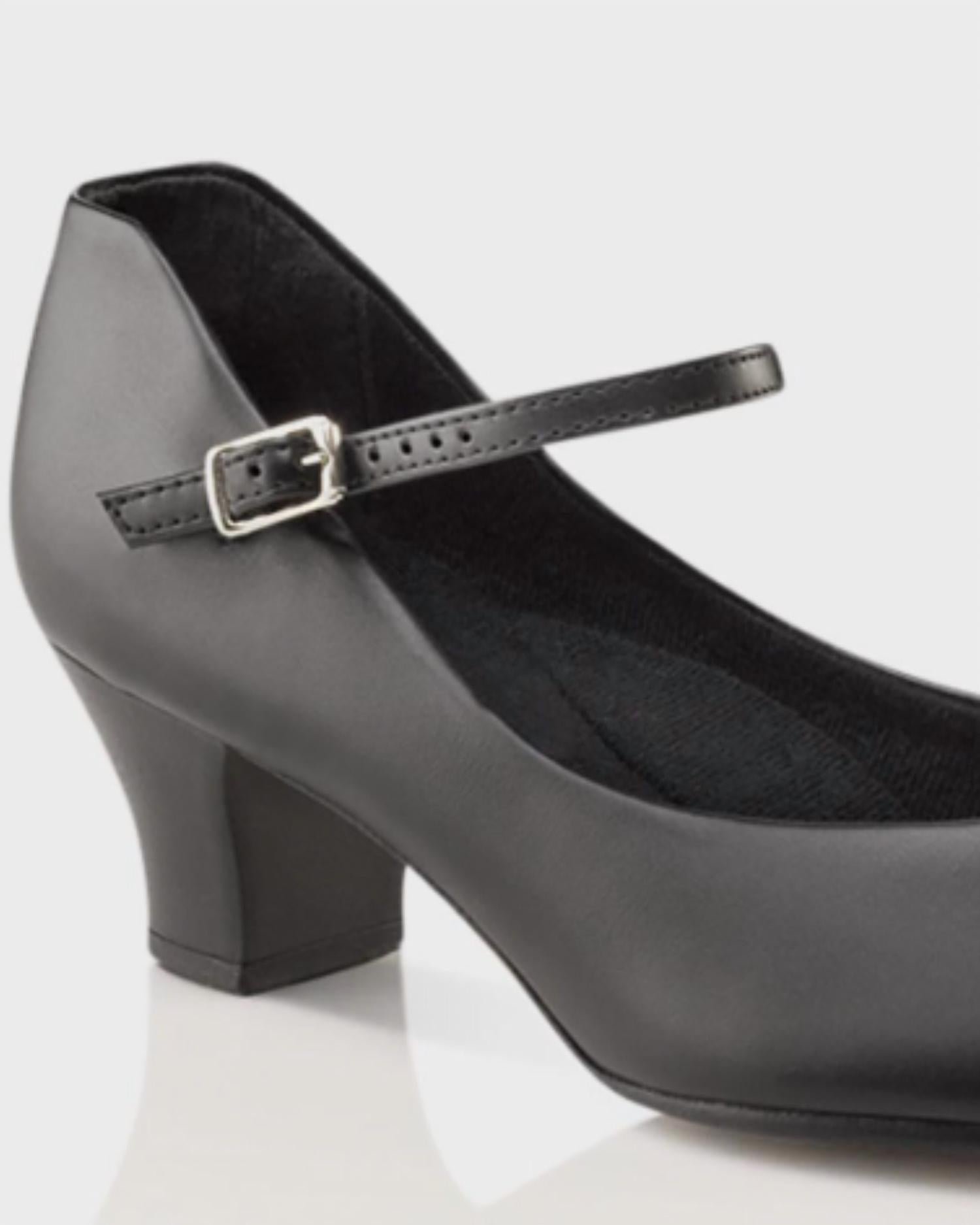Don’t be deceived, these heels are comfy as can be.Step into the spotlight with the Capezio Women’s Jr. Footlight Character Shoe in a rich caramel hue, a favorite among performers. This stylish shoe features a 1.5′ block heel with a scored leather top lift to ensure stability, and a soft PU leather upper for a polished look. Designed for comfort, it boasts a foam padded footbed, moisture absorbent microfiber lining, and an Achilles notch for added ease. The slim leather buckle closure secures the fit, while the closed round toe and sides provide a classic character look. Ideal for shows, remember to start 1/2 size up from your street shoe size.