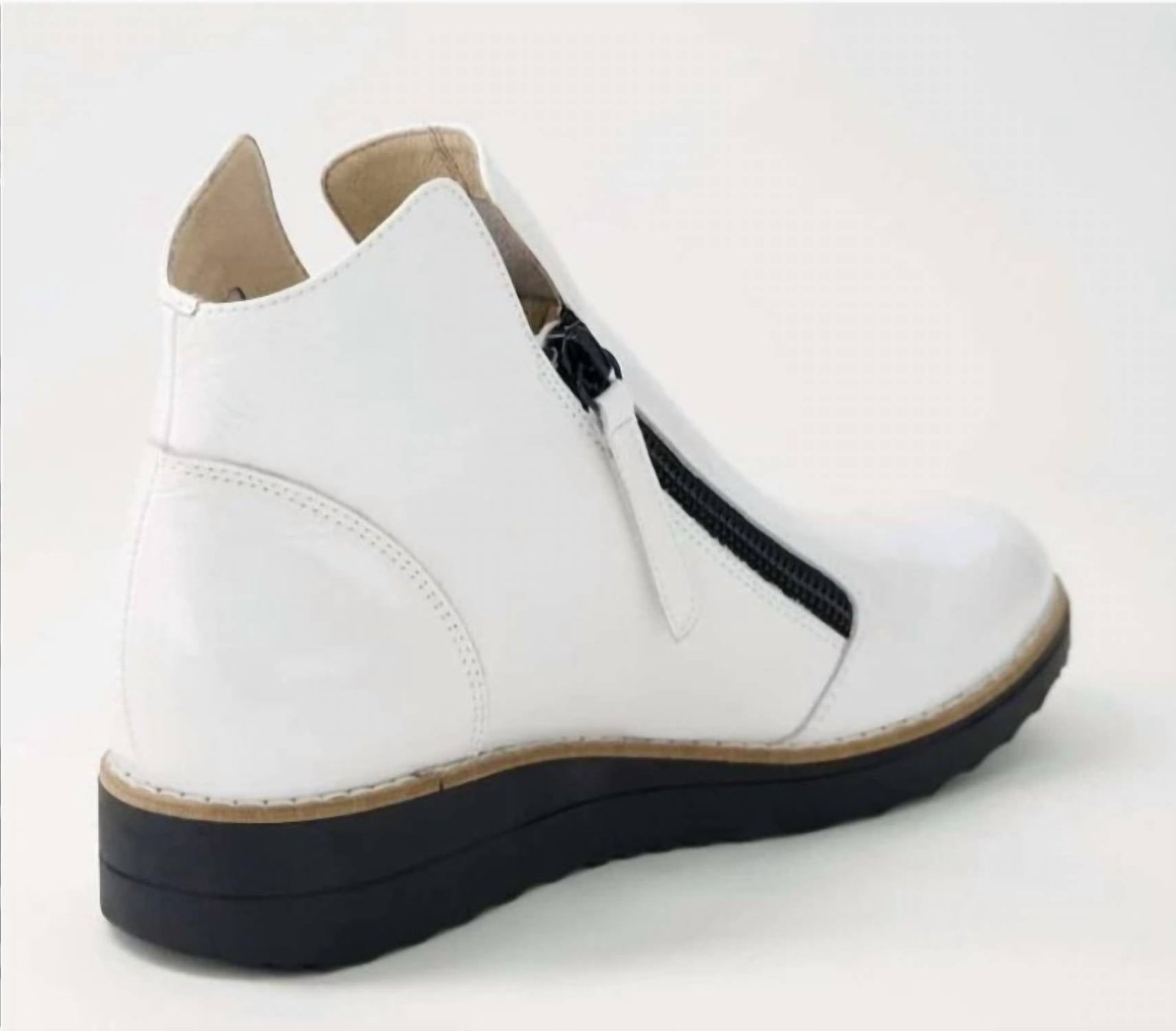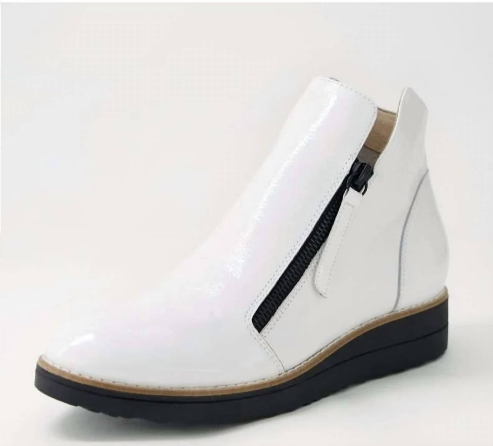 Say hello to the perfect, most versatile boot. The ankle height makes this style easily transition from day to night. Wear them with your favorite skinny jeans and tee for a more laid back look, or pair them with your favorite mini dress and jacket for a night out on the town.Discover the Women’s Ohmy Patent Leather Ankle Boots by Django & Juliette, a chic pair designed for casual wear with a sporty edge. Crafted from soft leather, these high-top sneakers feature a twin-zip closure and flexible sneaker sole in a stylish white with black sole. Composition: Leather. Heel Height: 3.5 cm (1.18 inches), with a low wedge heel style. Ideal for the fashion-forward woman with a taste for comfort and style.