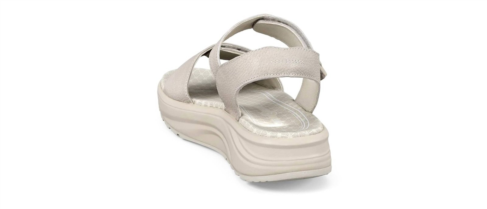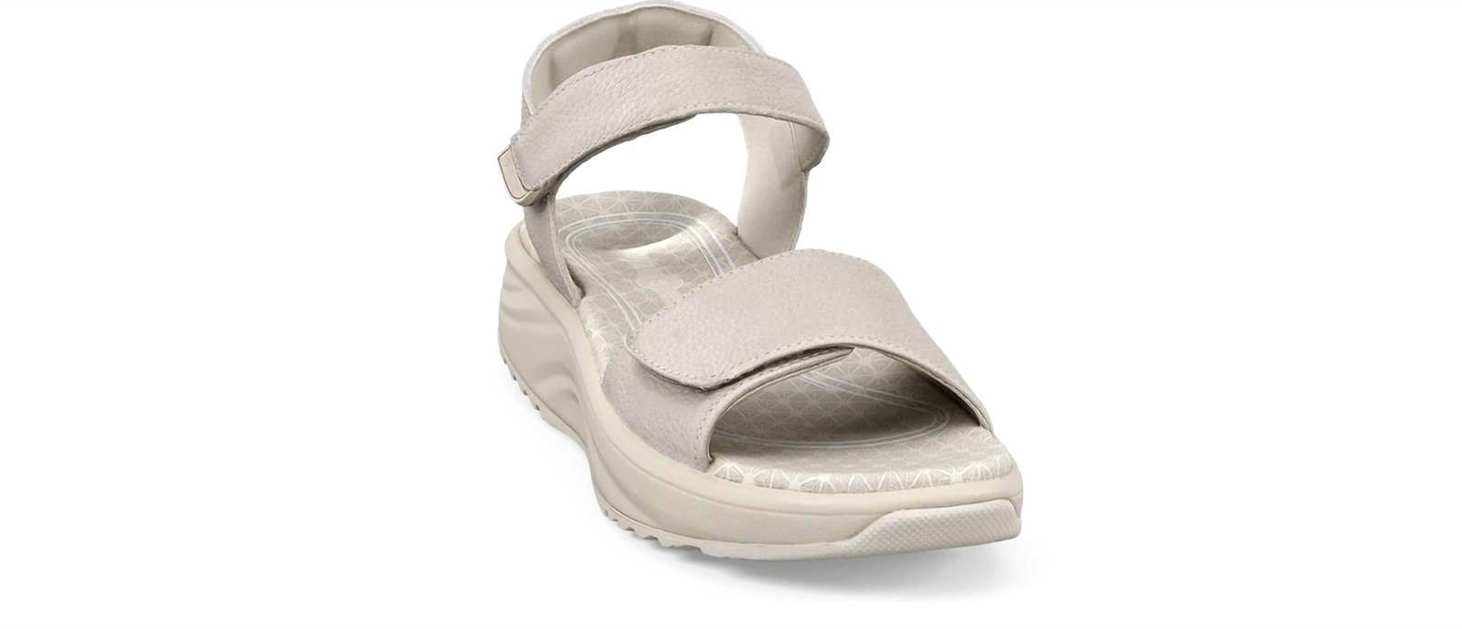 Flowy dresses, cropped pants, and even jumpsuits… this sandal works with them all!Introducing the Women’s Flores Euro Sandal by Joya, crafted from premium light beige full-grain tumbled leather for a soft, subtle finish. This sandal features adjustable Velcro straps on the instep and forefoot and an ergonomic footbed wrapped in soft microfiber, ensuring optimal comfort. The Joya Active sole technology offers impressive cushioning, rebound, and stability, making it perfect for dynamic individuals. Designed with a low wedge heel and a round toe, this sandal is ideal for vacation and spring streetwear style.