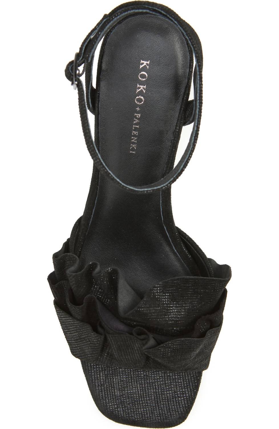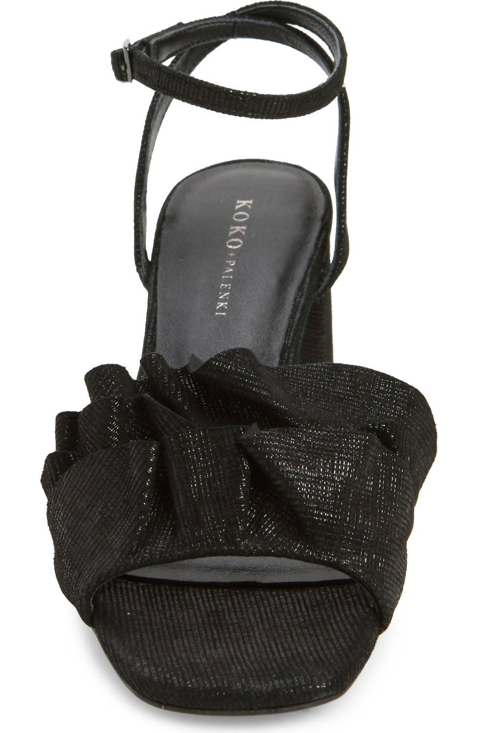 Pair these beauties with your favorite skinny jeans or dress for a night out on the town.The Women’s Serenity Square Toe Sandal by Koko + Palenki combines elegance with a hint of sparkle, thanks to its metallic fibers. Featuring an adjustable ankle strap with a buckle closure and hidden elastic inset for a snug fit, these sandals are crafted with a textile upper and synthetic lining and sole. Designed in black metallic leather, they present a stylish squared toe and a stable block heel with a height of 2.25 inches. Imported from China.