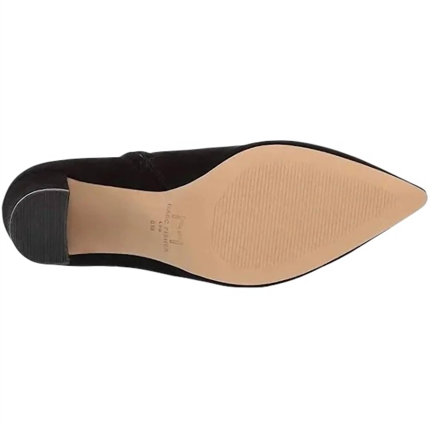 Say hello to the perfect, most versatile boot. The ankle height makes this style easily transition from day to night. Wear them with your favorite skinny jeans and tee for a more laid back look, or pair them with your favorite mini dress and jacket for a night out on the town.Step into elegance with the Women’s Ulani Suede Ankle Boots by MARC FISHER, designed in classic black for a minimalist fall style. These boots feature an elongated upper with a pointed toe and a functional inner zipper closure, ensuring both style and ease of wear. Crafted from premium suede, they boast a cushioned footbed for comfort and a stylish block heel measuring 3.25 inches in height, complemented by a 5-inch shaft. Ideal for evening events or a chic New Year’s Eve look, these boots are a sophisticated addition to any wardrobe.