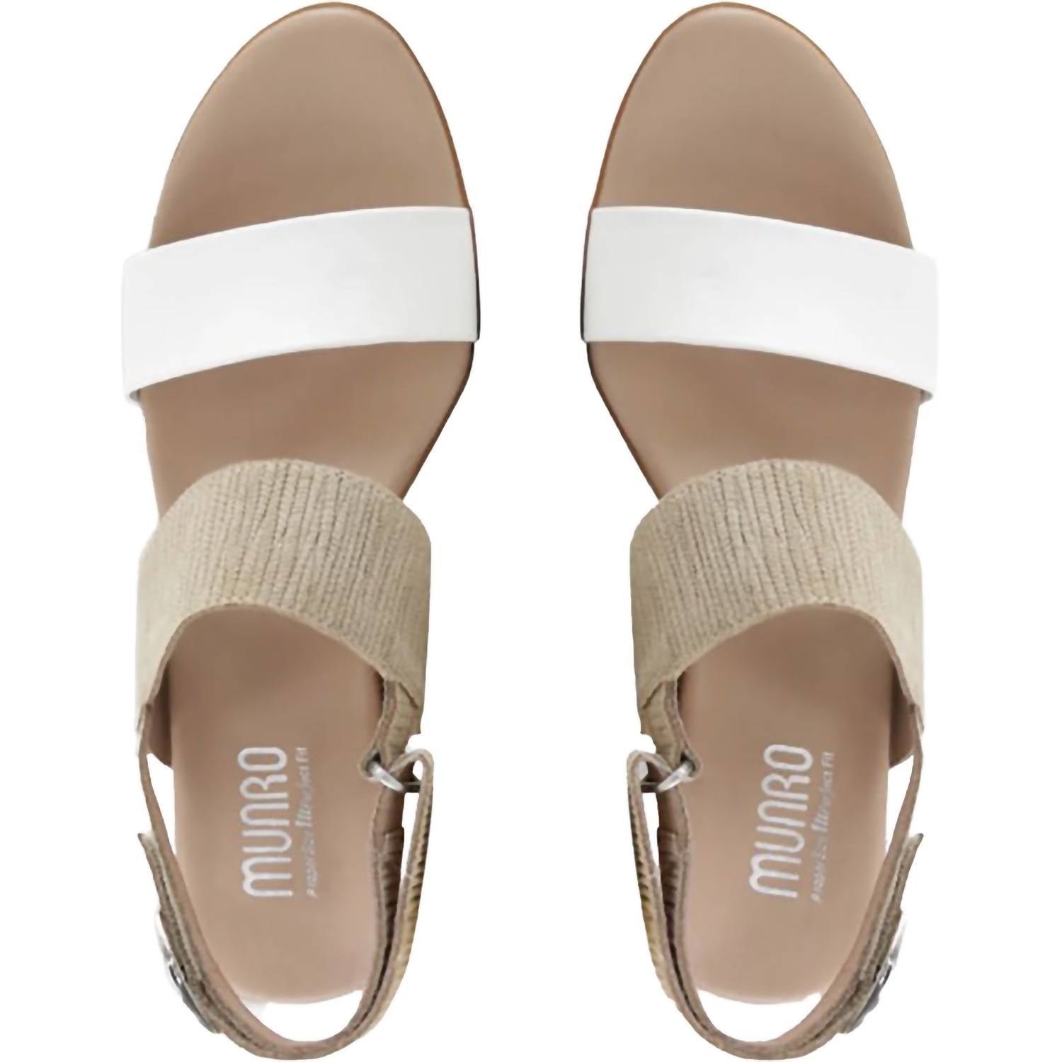 The perfect height for day to night.Introducing the Women’s Livia Sandals by Munro, a stylish choice crafted for comfort and elegance. Featuring calf nubuck and leather uppers, they are designed with a hook & loop back strap and ornamental buckle for a customizable fit. The sandals include a leather-wrapped, padded insole and microfiber lining, all supported by a stabilizing riveted steel shank. With a 1.5-inch leawood kitten heel, these open-toe sandals offer a chic option ideal for summer wear.