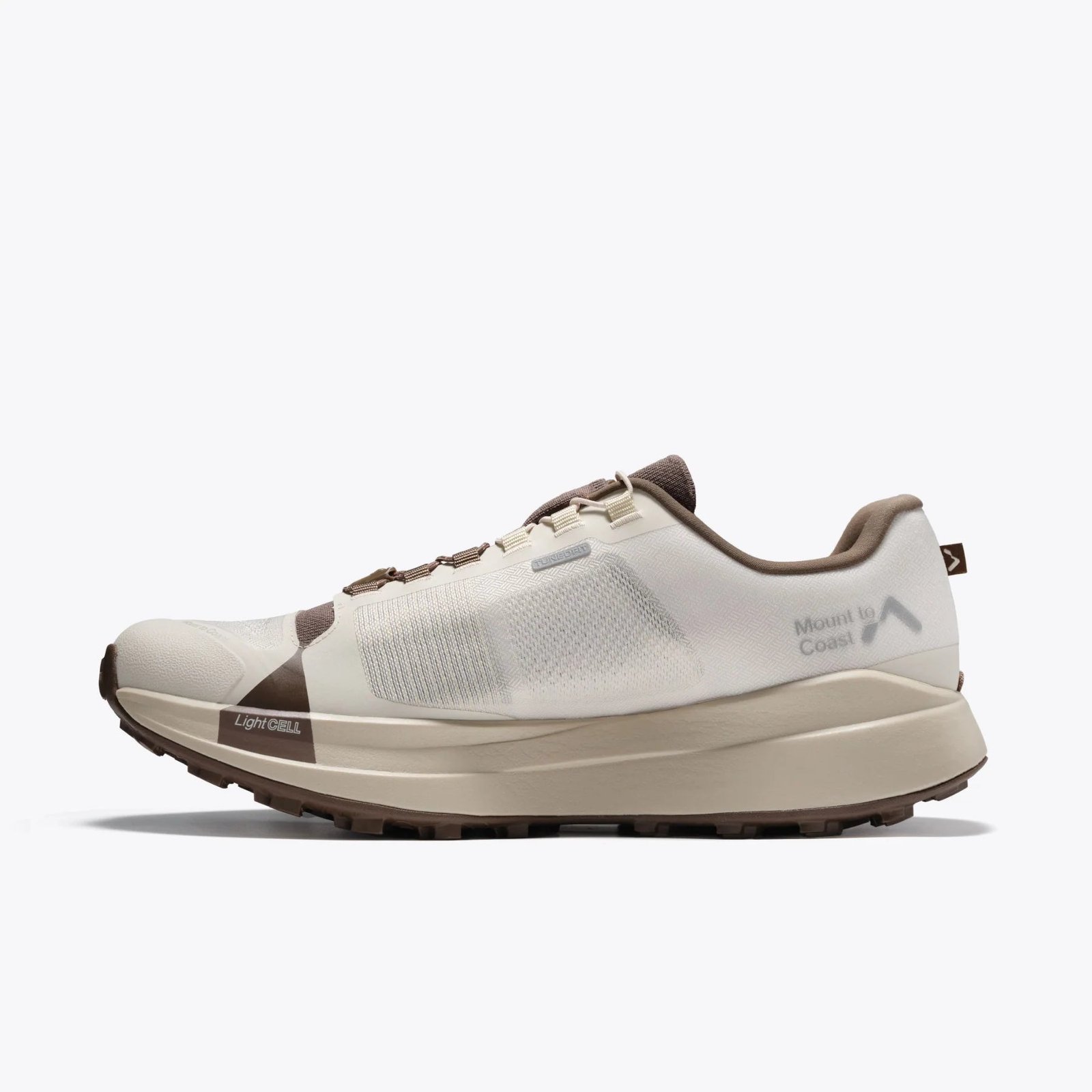 The Mount to Coast T1 is a trail running shoe designed for long-distance races and diverse terrains. It’s characterized by a lightweight and durable construction, a comfortable fit, and a focus on performance. The T1 features Mount to Coast’s signature TUNEDFIT Dual Lacing System, allowing for independent adjustment of the midfoot and forefoot. The shoe’s upper is made from a high-performance woven fabric reinforced with aramid fibers, and it incorporates a breathable, fast-drying anti-siphon knit tongue. The midsole is made from LightCELL, Mount to Coast’s proprietary PEBA-based foam, and the outsole features Vibram Megagrip rubber.